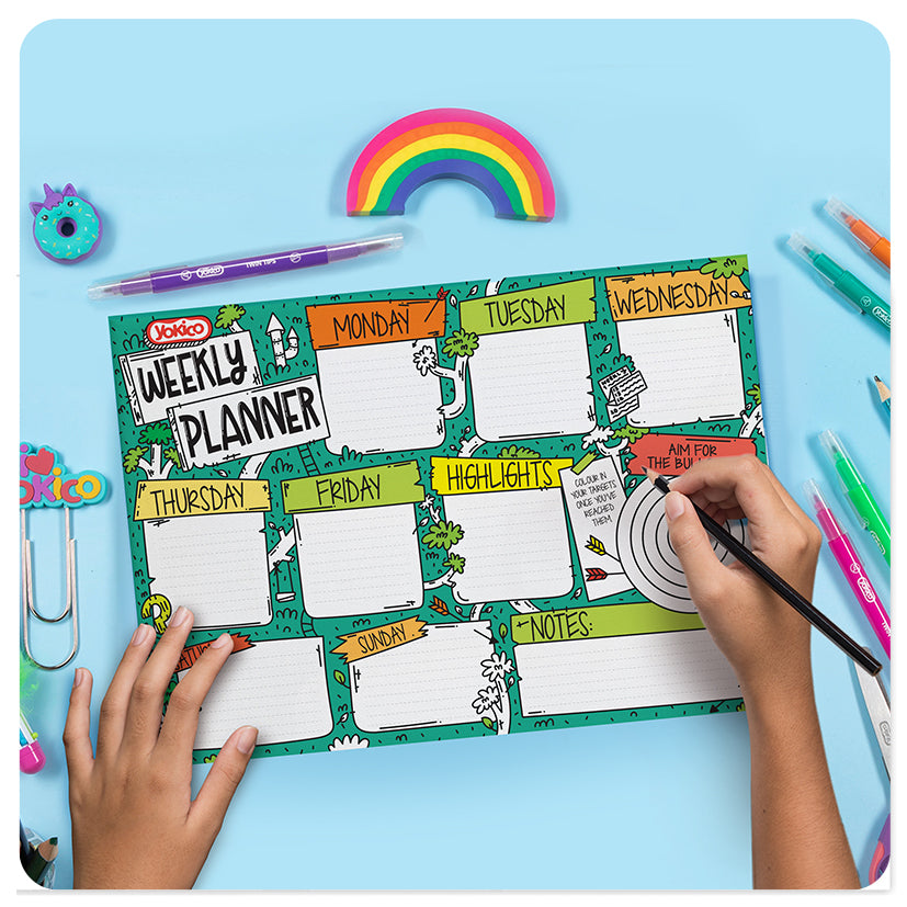 Stay on top of the week with the fun Yokico Weekly Desk Planner! With a handy goal chart and space for weekly highlights, it’s perfect for helping you (or your child) stay organised, motivated, and on track—all in a simple, fun way!