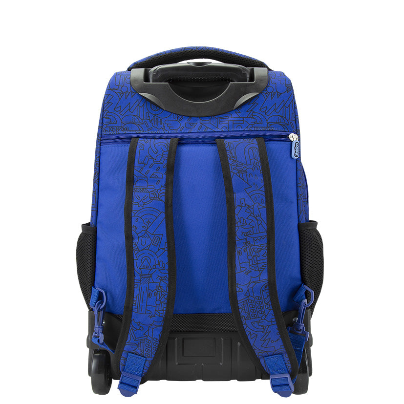 Big, bold, and ready for action—the Premium Trolley comes to life in the Blue Illi MashUp theme. Its sleek navy background is filled with fun doodle-style outlines, mixing funky shapes and characters into a cool, subtle design. With loads of room for school gear, this trolley-and-backpack combo makes carrying heavy loads a breeze. Simply stow the straps in the back compartment, roll away with ease, and enjoy a smooth ride all school day long!