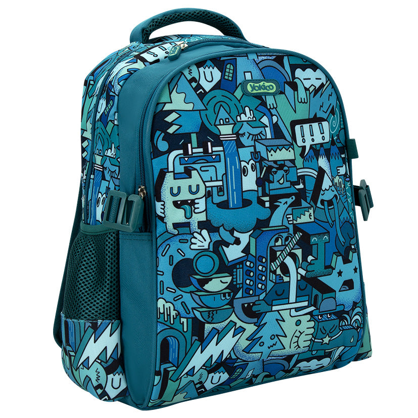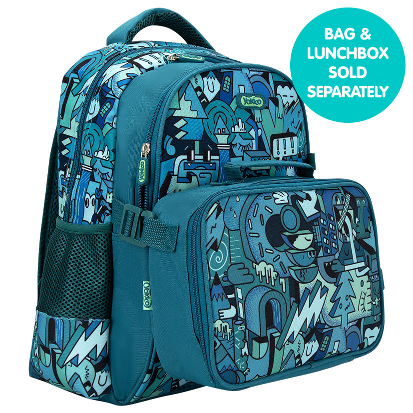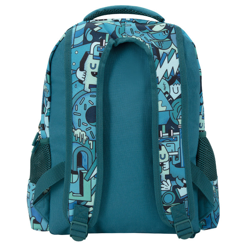 Get ready for giggles with the Green MashUp Backpack (Clip-on)! Covered in a quirky mash-up of shapes, faces, and funny characters, it’s a backpack that’s full of fun. Two handy clips on the sides let you attach it to our clip-on lunchbox, keeping everything together. With plenty of room for books, toys, and essentials, it’s the ultimate backpack for school, play, and everyday adventures. Lunchbox purchased separately.