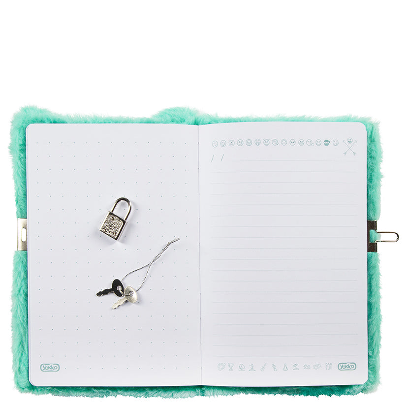 Keep your secrets safe in the cutest way with the Yokico Kitty's Kitties Fluffy Lockable Journal! This soft and fluffy journal features a lock and key for privacy, plus a see-through zippered front pouch holding three adorable kitty plushies. It’s the perfect place to write your thoughts, dreams, and doodles—fun, fuzzy, and full of charm!