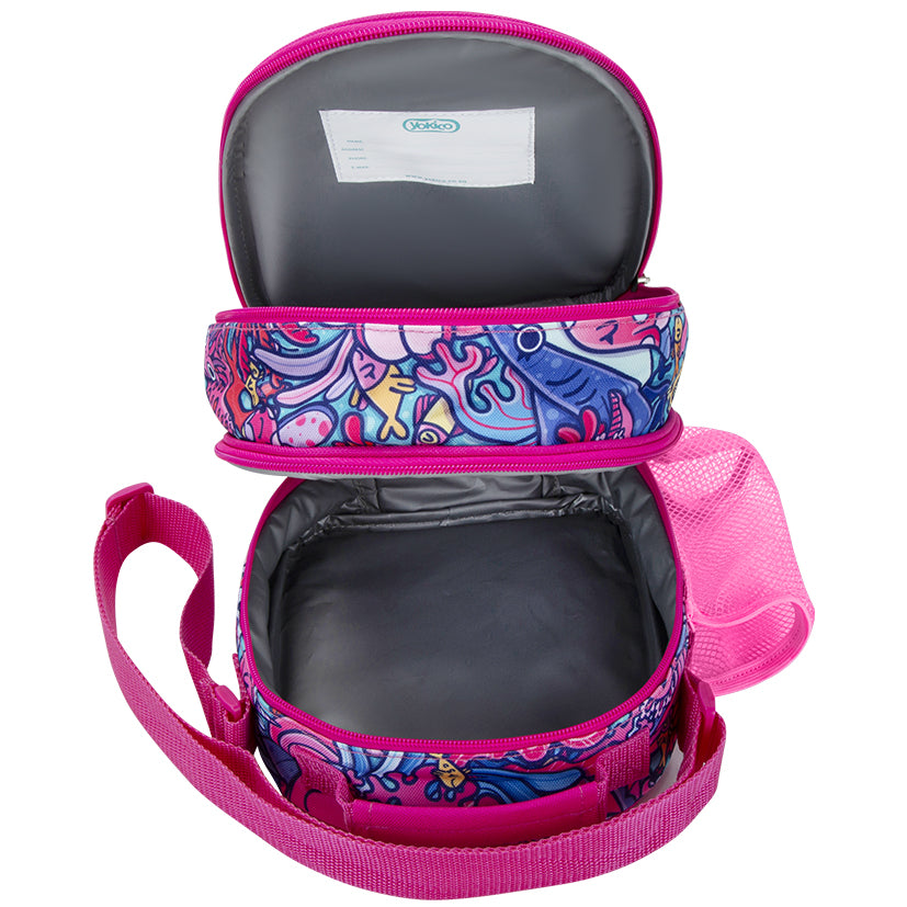 Our Yokico sling lunchbox is the ultimate solution for your lunchtime needs! The two compartments are perfect for separating your main meal from snacks and it also has a convenient side pocket for your cooldrink or water bottle. The easy-carry handle and adjustable shoulder sling make it comfortable to take with you wherever you go!