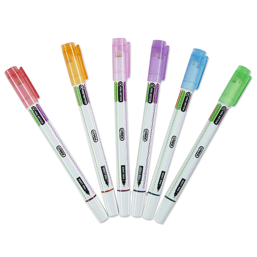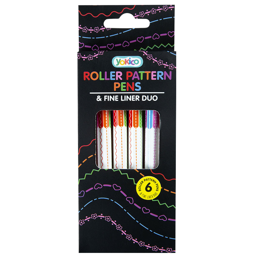 Double the fun with the magical Yokico Dual Sided Roller Stamp Pen! One end has a roller pattern to add playful borders and lines that make your art pop, while the other features a fine liner.
