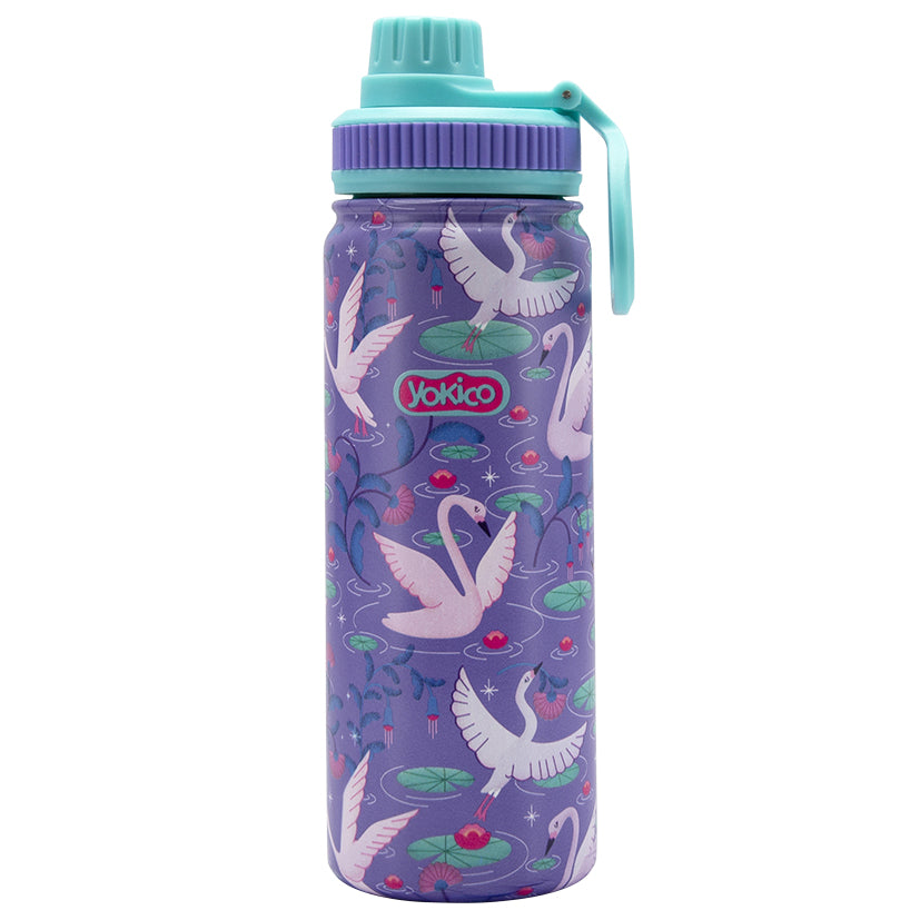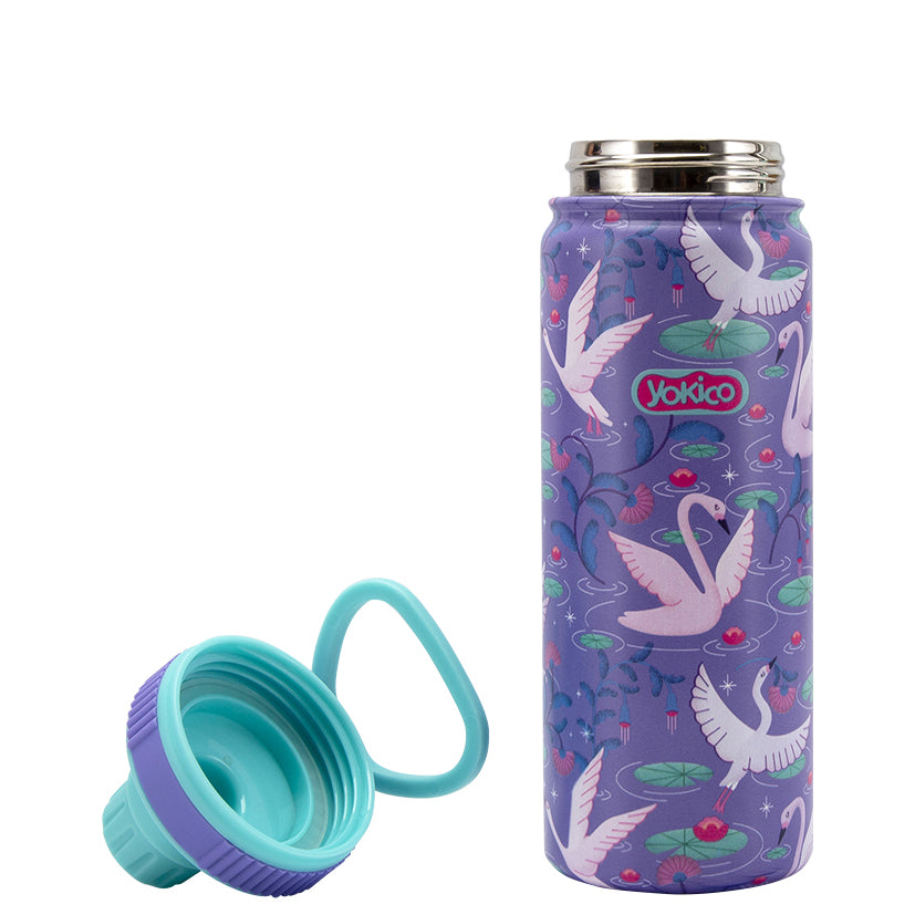 Graceful and serene, the Swan Dbl Wall Stainless Steel Bottle captures the beauty of a calm water garden. Featuring elegant swans gliding across a lilac background with floating lilies and soft floral accents, this bottle adds a touch of magic to your daily hydration. The double-wall stainless steel design keeps your drinks cool for longer, while the secure lid and handle make it easy to carry anywhere. Stay refreshed in style with this enchanting Yokico bottle!