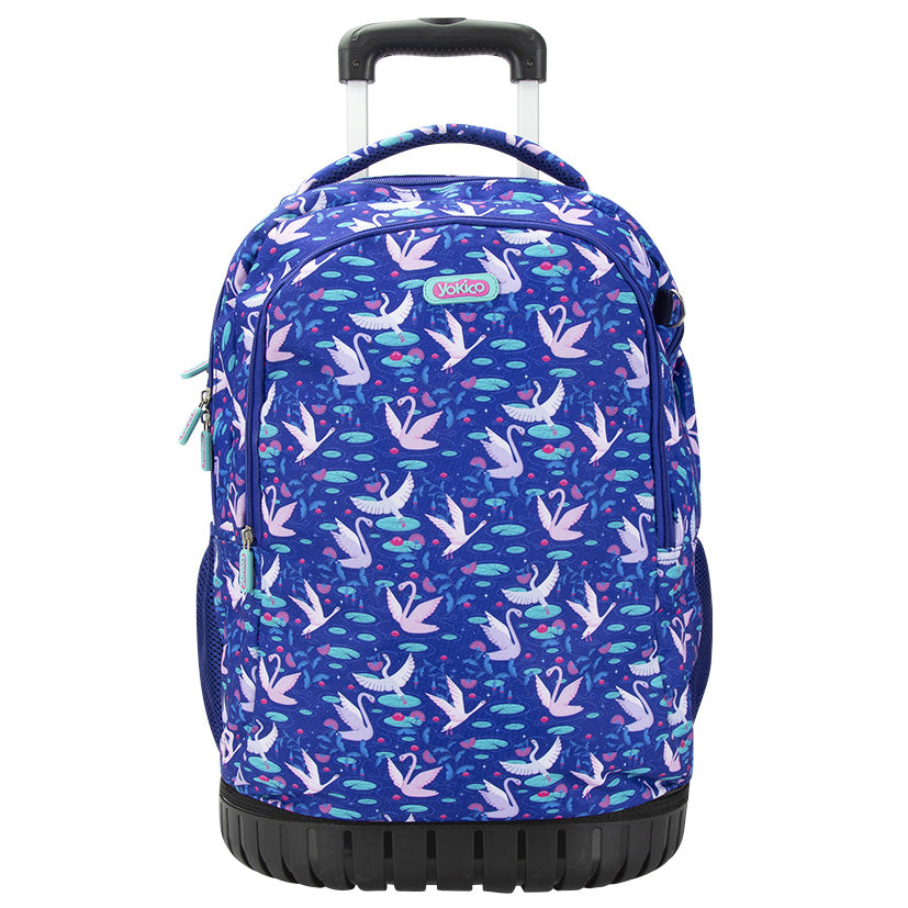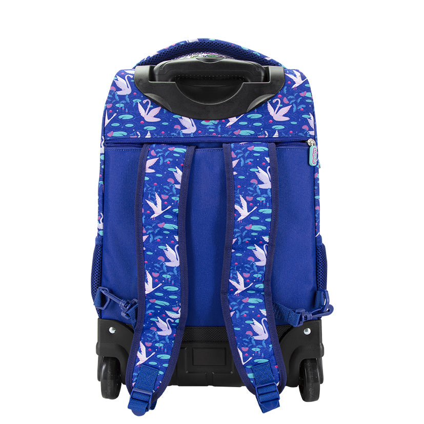 Elegant and graceful, the Swans Premium Trolley brings a touch of charm to school days. Its beautiful swan-themed design makes it stand out, while the extra-large build offers all the space needed for books, stationery, and more. Built as a versatile trolley-and-backpack combo, it rolls smoothly or can be carried comfortably on the back. Simply tuck the straps into the back compartment before rolling to keep the bag neat, protected, and ready for the day.